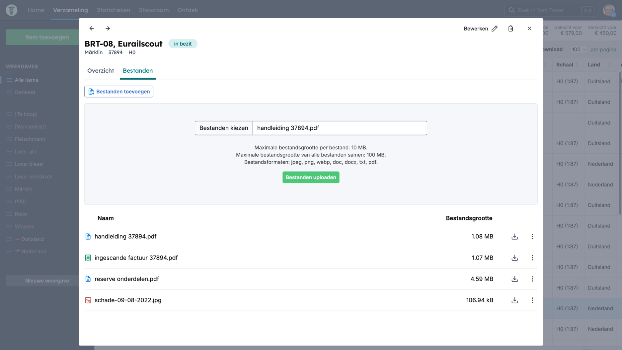 Yard Tower biedt je de mogelijkheid om verschillende soorten documenten te uploaden:
