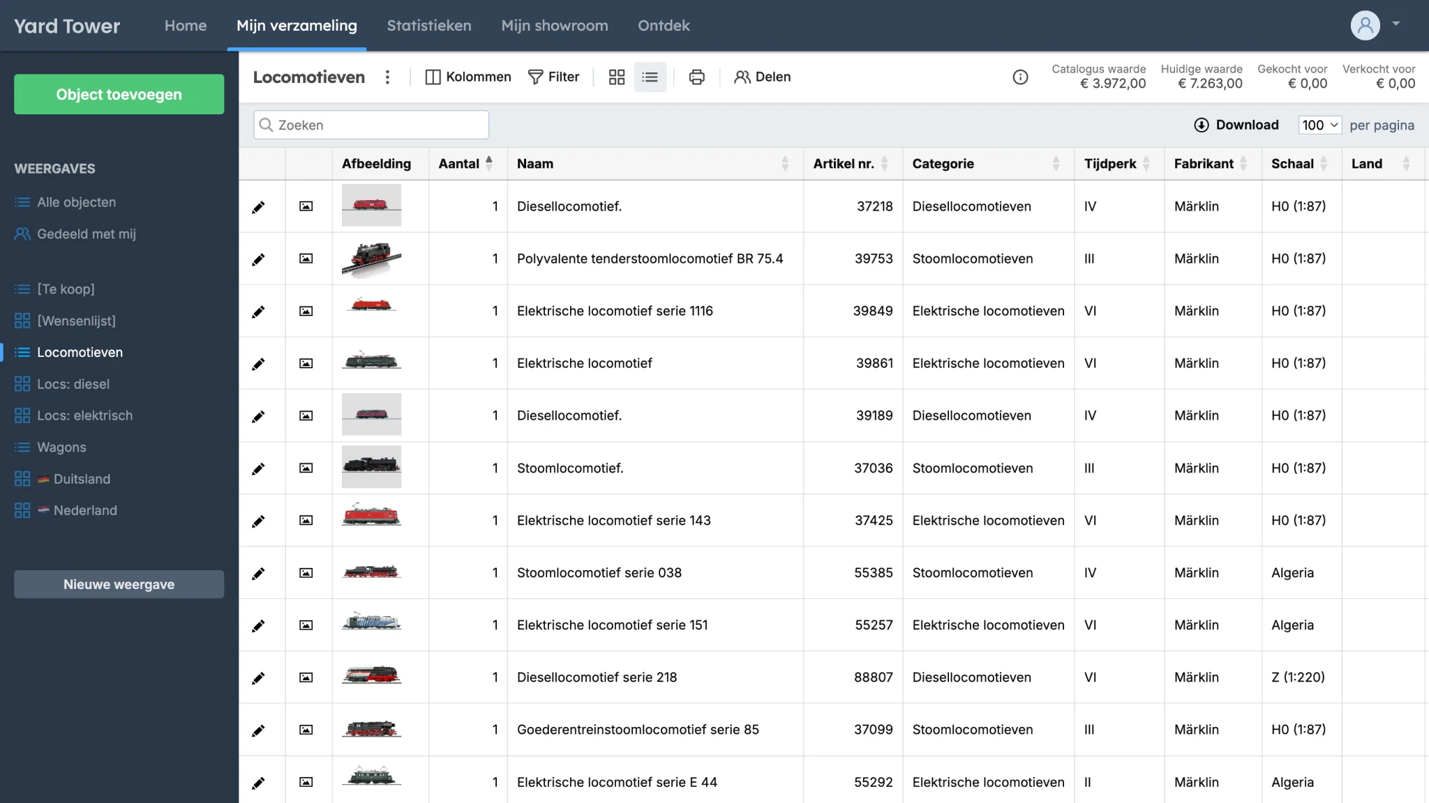 Organiseer en structureer je volledige modelspoorinventaris op een slimme manier in een modeltrein database met Yard Tower.